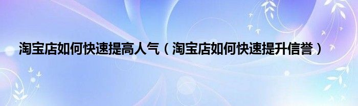 淘宝店如何快速提高人气(淘宝店如何快速提升信誉)