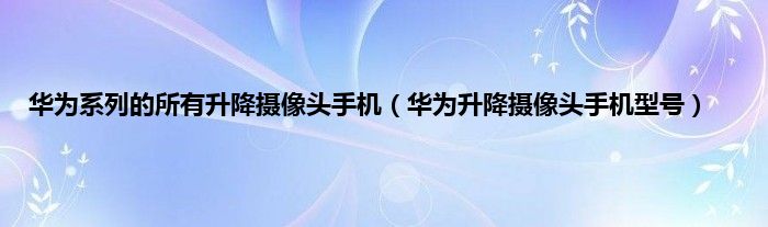 大家好,小常来为大家解答以上问题。华为系列的所有升降摄像头手机,华为升降摄像头手机型号很多人还不知道,现在让我们一起来看看吧!