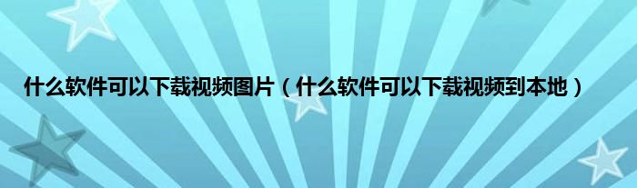 什么软件可以下载视频图片(什么软件可以下载视频到本地)