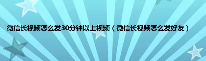 大家好,小常来为大家解答以上问题。微信长视频怎么发30分钟以上视频,微信长视频怎么发好友很多人还不知道,现在让我们一起来看看吧!