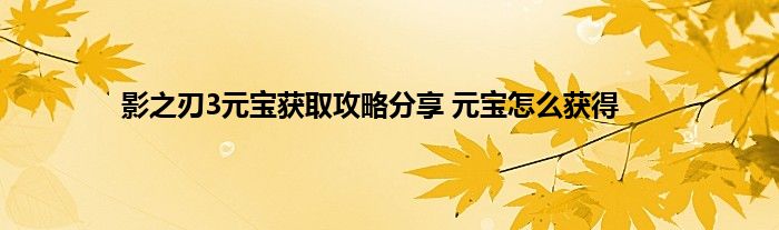 影之刃3元宝怎么猎取 影之刃3元宝猎取攻略