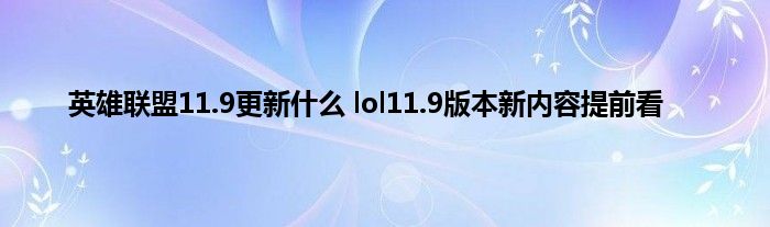 英雄联盟11.9更新什么 lol11.9版本新内容提前看