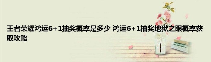最近王者又上线了个新的点券抽奖活动,很多小伙伴表示,自己不是欧皇配参加抽奖活动吗?下面和小编一起来看看鸿运6+1抽奖概率介绍,看完了大家再决定参不参与这个抽奖哦~