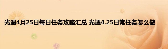 以上就是关于光遇4.25任务攻略的全部内容了,希翼能够帮助到各位玩家。