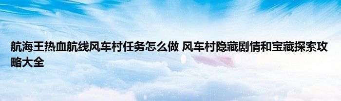 航海王热血航线风车村隐藏剧情和宝藏探究攻略