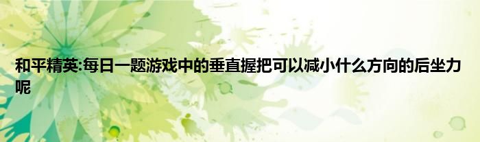 小编今天给各位玩家朋友们带来的是和平精英:每日一题游戏中的垂直握把可以减小什么方向的后坐力呢,有记得的玩家朋友吗?不记得也没有关系,小编已经帮助大家把和平精英:每日一题游戏中的垂直握把可以减小什么方向的后坐力呢找了出来,你只需要动动你的小手就可以轻松知道啦,快来瞧一瞧吧。