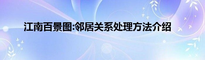 小编今天给各位玩家朋友们带来的是江南百景图:邻居关系处理方法介绍,有记得的玩家朋友吗?不记得也没有关系,小编已经帮助大家把江南百景图:邻居关系处理方法介绍找了出来,你只需要动动你的小手就可以轻松知道啦,快来瞧一瞧吧。