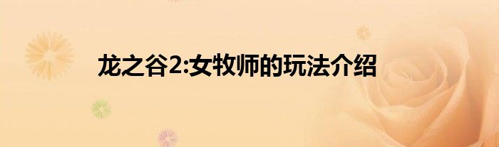 最佳答案小编今天给各位玩家朋友们带来的是龙之谷2:女牧师的玩法介绍,有记得的玩家朋友吗?不记得也没有关系,小编已经帮助大家把龙之谷2:女牧师的玩法介绍找了出来,你只需要动动你的小手就可以轻松知道啦,快来瞧一瞧吧。 女牧师主属性是智力,主武器魔杖,副武器盾。在游戏中定位是辅助职业,真正意义上...