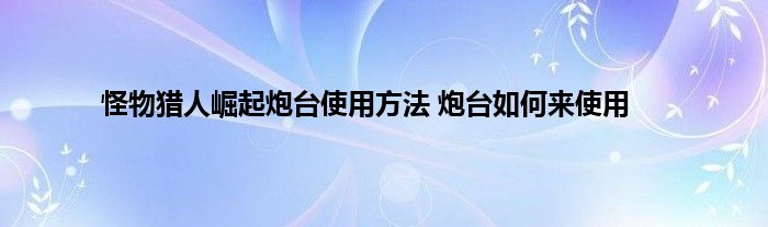以上就是怪物猎人崛起炮台技巧分享,还希翼能够帮助到大家。