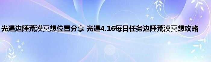 光遇今天的每日任务中有一个冥想任务,需要玩家在边陲荒漠的神庙里冥想,很多玩家找不到这个神庙的位置,晃悠半天,但是这个位置并不难找,下面就来尾随小编一起来看看冥想位置在哪里,希翼能帮到大家。