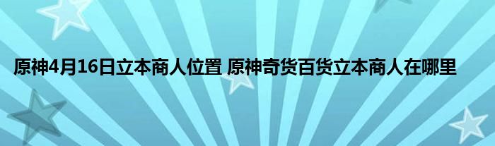 原神新一期的奇货百货活动已经开始了,今天是4月16日,玩家需要找到立本商人的位置来完成攻略,立本算是原神最良心的活动,只要缴纳一些材料就可以获得奖励,关键是有原石,那么今天的立本商人在哪里呢,下面就来尾随小编一起来看看吧。
