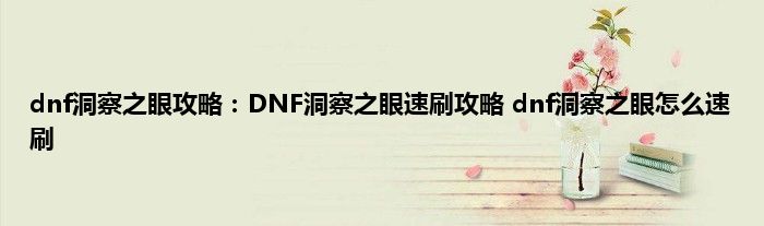 DNF洞察之眼速刷攻略 dnf洞察之眼怎么速刷