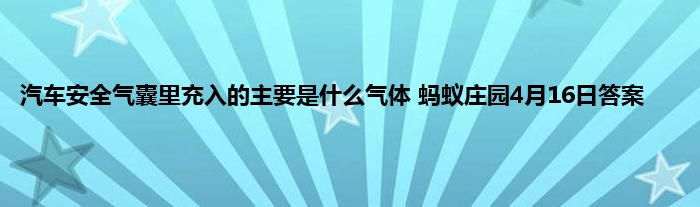 汽车安全气囊里充入的主要是什么气体?蚂蚁庄园4月16日的问题正式发布,如果回答正确就可以领取奖励,可能很多的玩家还不太清晰具体的答案是什么,为了让大家都能领取到小鸡饲料,下面就是蚂蚁庄园小课堂4月16日的答案和答案解析。