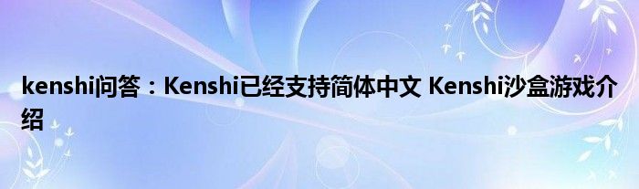 今天来聊聊关于kenshi问答:Kenshi已经支持简体中文,Kenshi沙盒游戏介绍的文章,游戏是很多人的选择,但是游戏玩多了也会身心疲惫,现在就为大家来简单介绍下kenshi问答:Kenshi已经支持简体中文,Kenshi沙盒游戏介绍,希望对各位小伙伴们有所帮助。