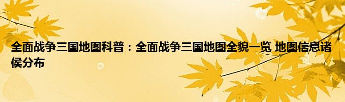 全面战争三国地图全貌一览 地图信息/诸侯分布本作视觉效果绝佳,武术打斗激烈,可谓战争的艺术。再加上用户界面美观,场景令人震撼,还有真实的中国风艺术,本作重塑的古代中国可谓一场视觉盛宴。快来看看全面战争三国地图全貌一览 地图信息/诸侯分布吧!