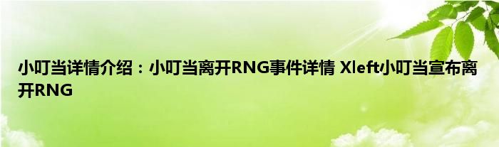以上就是小叮当详情介绍:小叮当离开RNG事件详情,Xleft小叮当宣布离开RNG的推荐,相信通过小叮当详情介绍:小叮当离开RNG事件详情,Xleft小叮当宣布离开RNG这篇文章能帮到你,也欢迎对游戏很感兴趣小伙伴们一起来探讨。
