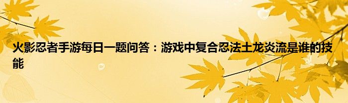以上就是火影忍者手游每日一题问答:游戏中复合忍法土龙炎流是谁的技能的推荐,相信通过火影忍者手游每日一题问答:游戏中复合忍法土龙炎流是谁的技能这篇文章能帮到你,也欢迎对游戏很感兴趣小伙伴们一起来探讨。