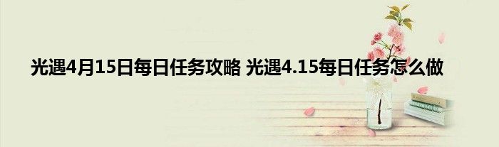 光遇每天都需要玩家来完成每日任务,完成任务之后可以获得丰富的奖励,今天是4月15日,今天的日常任务已经出来了,分别是向一位玩家鞠躬,收集绿色星光,解救一只遥鲲,在霞光城上层冥想,很多玩家不知道绿色星光在哪,冥想位置在哪,下面就来跟着小编一起来看看吧。