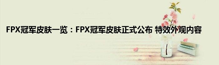 以上就是FPX冠军皮肤一览:FPX冠军皮肤正式公布,特效外观内容的推荐,相信通过FPX冠军皮肤一览:FPX冠军皮肤正式公布,特效外观内容这篇文章能帮到你,也欢迎对游戏很感兴趣小伙伴们一起来探讨。