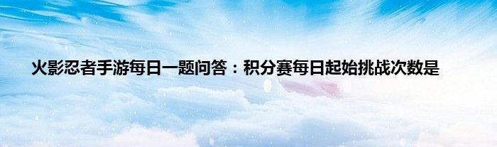 小编今天给各位玩家朋友们带来的是火影忍者手游每日一题问答:积分赛每日起始挑战次数是,有记得的玩家朋友吗?不记得也没有关系,小编已经帮助大家把火影忍者手游每日一题问答:积分赛每日起始挑战次数是找了出来,你只需要动动你的小手就可以轻松知道啦,快来瞧一瞧吧。