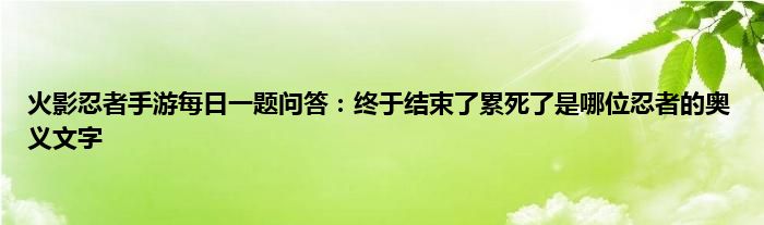 以上就是火影忍者手游每日一题问答:终于结束了累死了是哪位忍者的奥义文字的推荐,相信通过火影忍者手游每日一题问答:终于结束了累死了是哪位忍者的奥义文字这篇文章能帮到你,也欢迎对游戏很感兴趣小伙伴们一起来探讨。