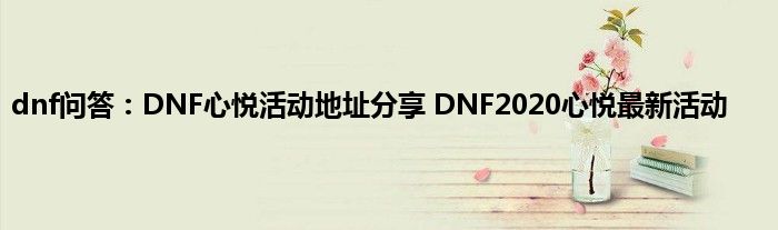 dnf问答:DNF心悦活动地址分享DNF2020心悦最新活动