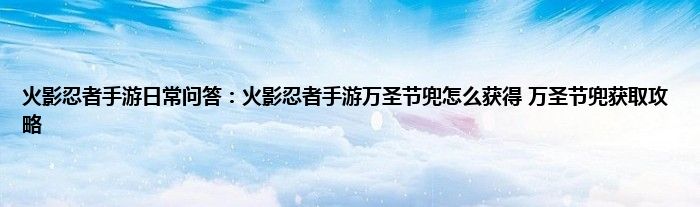 今天来聊聊关于火影忍者手游日常问答:火影忍者手游万圣节兜怎么获得,万圣节兜获取攻略的文章,游戏是很多人的选择,但是游戏玩多了也会身心疲惫,现在就为大家来简单介绍下火影忍者手游日常问答:火影忍者手游万圣节兜怎么获得,万圣节兜获取攻略,希望对各位小伙伴们有所帮助。