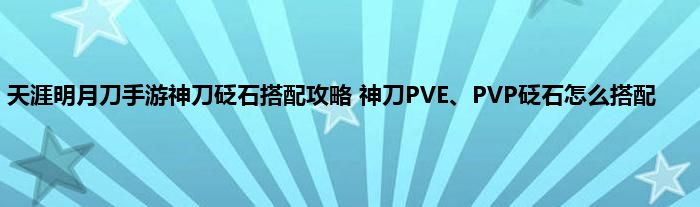 天涯明月刀手游神刀通过搭配不同的砭石可以达到不同的效果,PVP和PVE有不同的搭配,很多玩家不知道神刀要怎么搭配砭石,下面就来尾随小编一起来看一下详细的攻略吧,希翼能帮到大家,错过会后悔嗷。