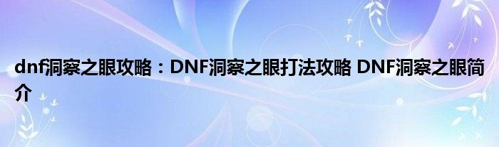 DNF洞察之眼打法技巧攻略