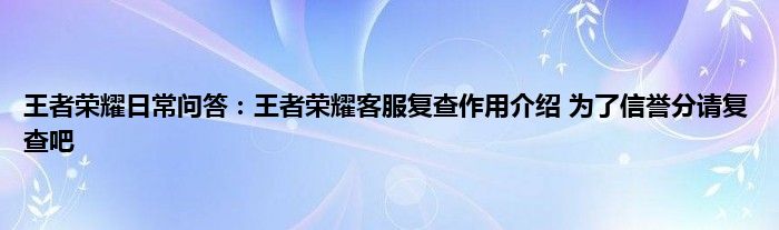 今天来聊聊关于王者荣耀日常问答:王者荣耀客服复查作用介绍,为了信誉分请复查吧的文章,游戏是很多人的选择,但是游戏玩多了也会身心疲惫,现在就为大家来简单介绍下王者荣耀日常问答:王者荣耀客服复查作用介绍,为了信誉分请复查吧,希望对各位小伙伴们有所帮助。