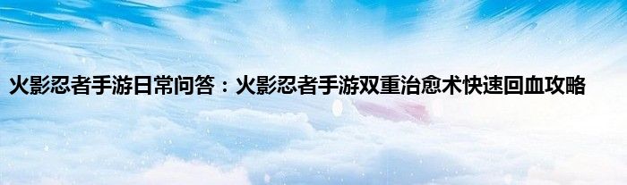 小编今天给各位玩家朋友们带来的是火影忍者手游日常问答:火影忍者手游双重治愈术快速回血攻略,有记得的玩家朋友吗?不记得也没有关系,小编已经帮助大家把火影忍者手游日常问答:火影忍者手游双重治愈术快速回血攻略找了出来,你只需要动动你的小手就可以轻松知道啦,快来瞧一瞧吧。