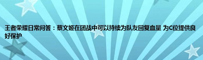 以上就是王者荣耀日常问答:蔡文姬在团战中可以持续为队友回复血量,为C位提供良好保护的推荐,相信通过王者荣耀日常问答:蔡文姬在团战中可以持续为队友回复血量,为C位提供良好保护这篇文章能帮到你,也欢迎对游戏很感兴趣小伙伴们一起来探讨。