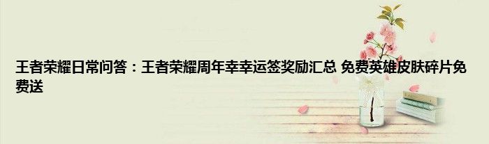今天来聊聊关于王者荣耀日常问答:王者荣耀周年幸幸运签奖励汇总,免费英雄皮肤碎片免费送的文章,游戏是很多人的选择,但是游戏玩多了也会身心疲惫,现在就为大家来简单介绍下王者荣耀日常问答:王者荣耀周年幸幸运签奖励汇总,免费英雄皮肤碎片免费送,希望对各位小伙伴们有所帮助。