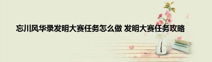 忘川风华录发明大赛任务攻略:
