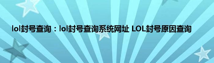 LOL封号查询系统官网入口: