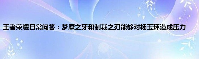 以上就是王者荣耀日常问答:梦魇之牙和制裁之刃能够对杨玉环造成压力的推荐,相信通过王者荣耀日常问答:梦魇之牙和制裁之刃能够对杨玉环造成压力这篇文章能帮到你,也欢迎对游戏很感兴趣小伙伴们一起来探讨。