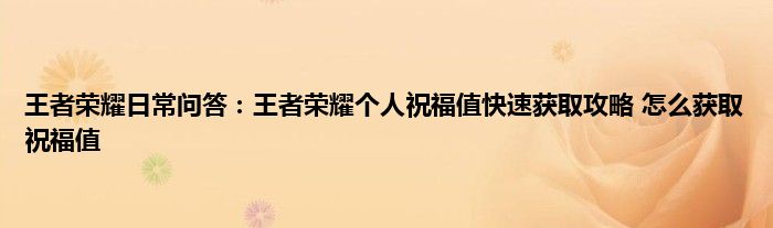 小编今天给各位玩家朋友们带来的是王者荣耀日常问答:王者荣耀个人祝福值快速获取攻略,怎么获取祝福值,有记得的玩家朋友吗?不记得也没有关系,小编已经帮助大家把王者荣耀日常问答:王者荣耀个人祝福值快速获取攻略,怎么获取祝福值找了出来,你只需要动动你的小手就可以轻松知道啦,快来瞧一瞧吧。