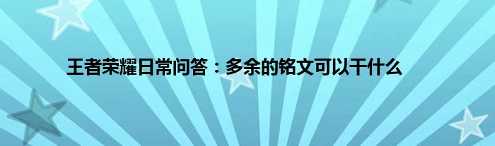 小编今天给各位玩家朋友们带来的是王者荣耀日常问答:多余的铭文可以干什么,有记得的玩家朋友吗?不记得也没有关系,小编已经帮助大家把王者荣耀日常问答:多余的铭文可以干什么找了出来,你只需要动动你的小手就可以轻松知道啦,快来瞧一瞧吧。