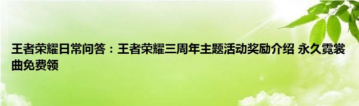 今天来聊聊关于王者荣耀日常问答:王者荣耀三周年主题活动奖励介绍,永久霓裳曲免费领的文章,游戏是很多人的选择,但是游戏玩多了也会身心疲惫,现在就为大家来简单介绍下王者荣耀日常问答:王者荣耀三周年主题活动奖励介绍,永久霓裳曲免费领,希望对各位小伙伴们有所帮助。