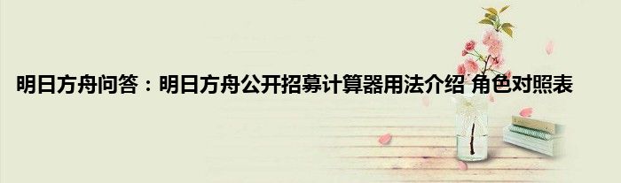 以上就是明日方舟问答:明日方舟公开招募计算器用法介绍,角色对照表的推荐,相信通过明日方舟问答:明日方舟公开招募计算器用法介绍,角色对照表这篇文章能帮到你,也欢迎对游戏很感兴趣小伙伴们一起来探讨。