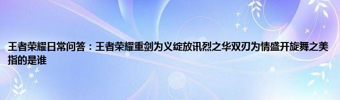 今天来聊聊关于王者荣耀日常问答:王者荣耀重剑为义绽放讯烈之华双刃为情盛开旋舞之美指的是谁的文章,游戏是很多人的选择,但是游戏玩多了也会身心疲惫,现在就为大家来简单介绍下王者荣耀日常问答:王者荣耀重剑为义绽放讯烈之华双刃为情盛开旋舞之美指的是谁,希望对各位小伙伴们有所帮助。