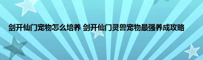 《剑开仙门》灵兽宠物培养攻略