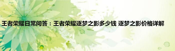 以上就是王者荣耀日常问答:王者荣耀逐梦之影多少钱,逐梦之影价格详解的推荐,相信通过王者荣耀日常问答:王者荣耀逐梦之影多少钱,逐梦之影价格详解这篇文章能帮到你,也欢迎对游戏很感兴趣小伙伴们一起来探讨。