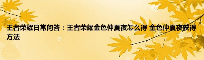 今天来聊聊关于王者荣耀日常问答:王者荣耀金色仲夏夜怎么得,金色仲夏夜获得方法的文章,游戏是很多人的选择,但是游戏玩多了也会身心疲惫,现在就为大家来简单介绍下王者荣耀日常问答:王者荣耀金色仲夏夜怎么得,金色仲夏夜获得方法,希望对各位小伙伴们有所帮助。