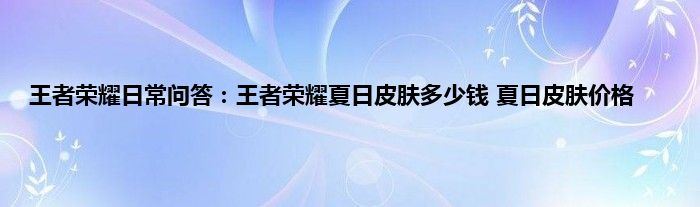 以上就是王者荣耀日常问答:王者荣耀夏日皮肤多少钱,夏日皮肤价格的推荐,相信通过王者荣耀日常问答:王者荣耀夏日皮肤多少钱,夏日皮肤价格这篇文章能帮到你,也欢迎对游戏很感兴趣小伙伴们一起来探讨。