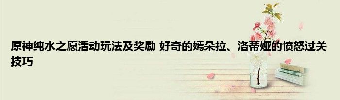 活动期间,纯水精灵将追加挑战活动关卡「洛蒂娅的愤慨」,旅行者可以自主选择挑战纯水精灵或活动关卡。活动挑战开启后,将进入特别挑战模式,无法暂停游戏或进行传送。