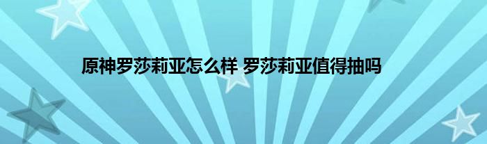 原神罗莎莉亚怎么样 罗莎莉亚值得抽吗