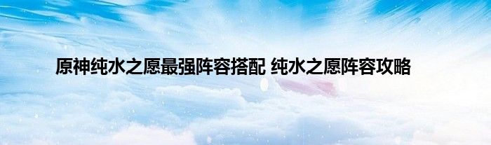 原神纯水之愿最佳打法阵容搭配推举