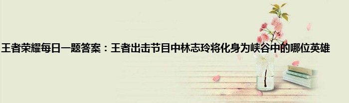 以上就是王者荣耀每日一题答案:王者出击节目中林志玲将化身为峡谷中的哪位英雄的推荐,相信通过王者荣耀每日一题答案:王者出击节目中林志玲将化身为峡谷中的哪位英雄这篇文章能帮到你,也欢迎对游戏很感兴趣小伙伴们一起来探讨。