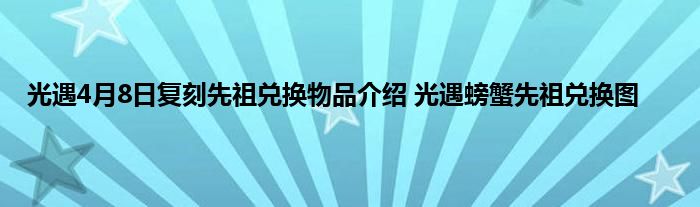 光遇4月8日有先祖复刻,这次复刻的是螃蟹先祖,玩家找到先祖位置之后可以兑换相应的物品和动作,这次的先祖可以兑换斗篷、帽子、螃蟹舞动作等等,具体兑换需要多少资源和道具呢,下面就来尾随小编一起来看看具体的情况吧。